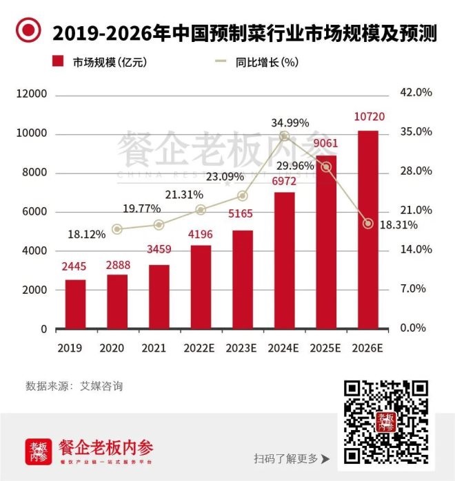同時(shí),根據(jù)多方研究機(jī)構(gòu)估算,預(yù)計(jì)2026年市場(chǎng)規(guī)模將突破10720億元。按照每年20%的復(fù)合增長(zhǎng)速度估算,未來(lái)6-7年我國(guó)預(yù)制菜市場(chǎng)或?qū)⒊f(wàn)億元規(guī)模。