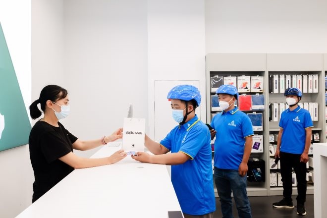 (iPhone 14開(kāi)售10分鐘,達(dá)達(dá)快送騎士將新機(jī)送到李先生手中)