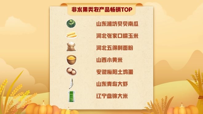 除了“果盤子”,中部、北方等各大主產(chǎn)區(qū)的農(nóng)產(chǎn)品撐起了老百姓家中的“菜籃子”與“米袋子”。進(jìn)入“超級農(nóng)貨節(jié)”暢銷榜的糧食、蔬菜、生鮮產(chǎn)品,基本被山東、遼寧、河北、山西、安徽等產(chǎn)區(qū)“承包”。