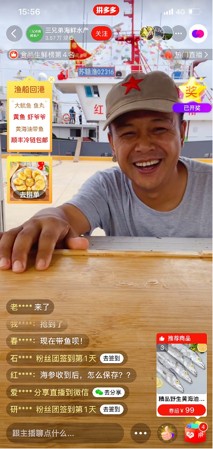 他們分工清晰,老大出海,老二直播,老三則是不出鏡的小助手。過去,大哥捕撈的海產(chǎn)通常論筐賣給收鮮船,至少搗騰3-4手,才能抵達(dá)消費(fèi)者手中。而今,他們把“海鮮檔口”直接開進(jìn)直播間,實(shí)現(xiàn)了“產(chǎn)消直連”。