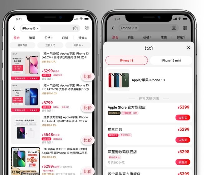 手機(jī)天貓App上線比價功能 哪家iPhone劃算一目了然