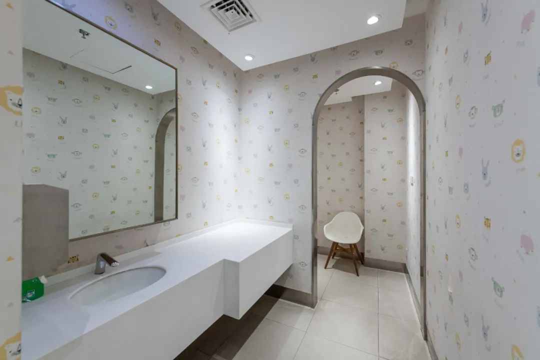 洗手間的改造除了在色彩、燈光、地板以及潔具等進行更新外,更在母嬰室、無障礙衛(wèi)生間等功能空間進行了新增。截至目前,商場已經(jīng)完成了11個母嬰室的改造,2-8層均配置了1-2個母嬰室。同時,員工與顧客衛(wèi)生間單獨分開,增加了顧客的體驗感。