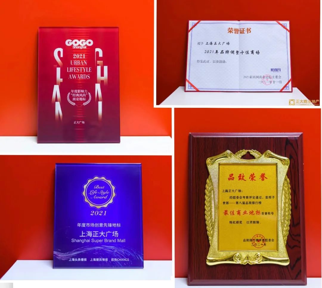 作為國內(nèi)第一座真正意義上的商業(yè)旗艦,正大廣場曾摘得“中國商業(yè)名牌企業(yè)”、全國唯一的“2006年度中國最佳購物中心進步獎”、2011年“中購聯(lián)中國購物中心年度業(yè)主獎”、2013和2014年“上海十大商業(yè)地標(biāo)獎”、2016年“上海購物中心商旅文融合創(chuàng)新獎”、 2017年上海商務(wù)委 “夜上海特色消費示范區(qū)”稱號、2021年“上海餐飲業(yè)“綠色餐廳示范商圈”等多項榮譽。