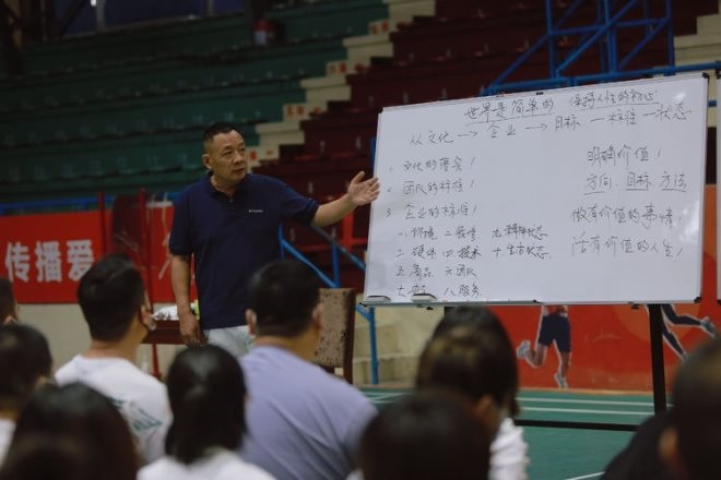 9月17日上午,于東來圍繞“公司的發(fā)展目標(biāo)”等話題,面向胖東來處助以上的中層管理人員召開了內(nèi)部會(huì)議。