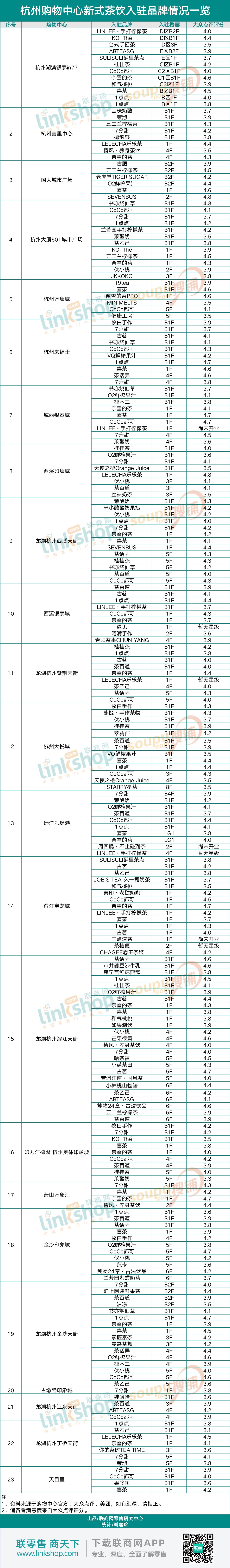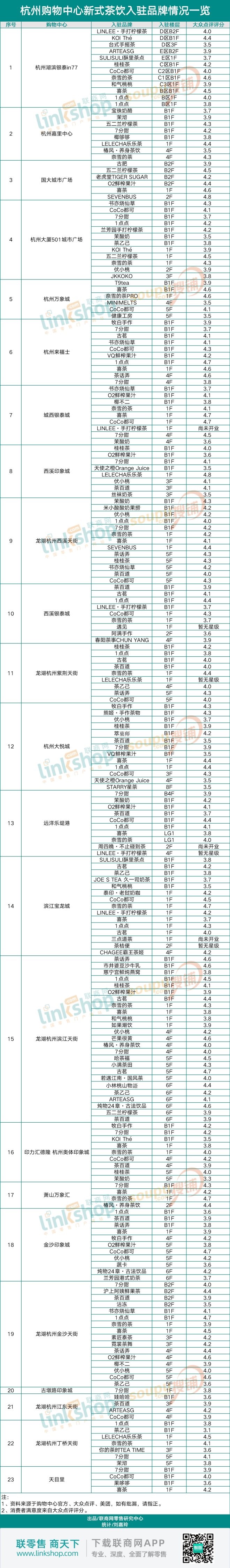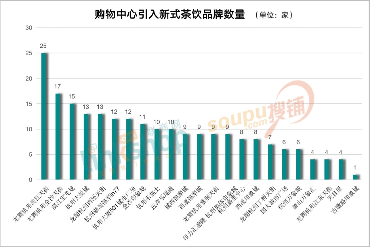 最多25家,杭州主要購(gòu)物中心都引入了哪些茶飲品牌?