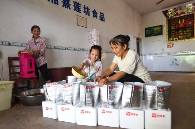 在電商模式下,從采摘、晾干、去殼加工到打包發(fā)貨、物流運輸,不到一周時間,一袋蓮子就能從田間抵達消費者手中。