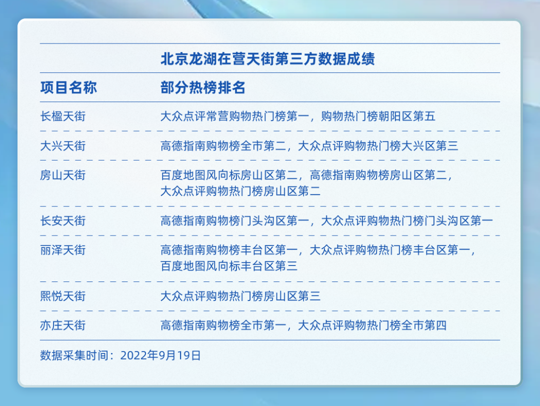 與項(xiàng)目內(nèi)品牌商戶銷售頻頻創(chuàng)下新高相對應(yīng)的是,高德地圖、大眾點(diǎn)評等第三方平臺上,龍湖北京商業(yè)已開業(yè)的七座天街,在各區(qū)熱門榜上均有亮眼表現(xiàn),一定程度上反應(yīng)了區(qū)域內(nèi)消費(fèi)者“用腳投票”的結(jié)果。