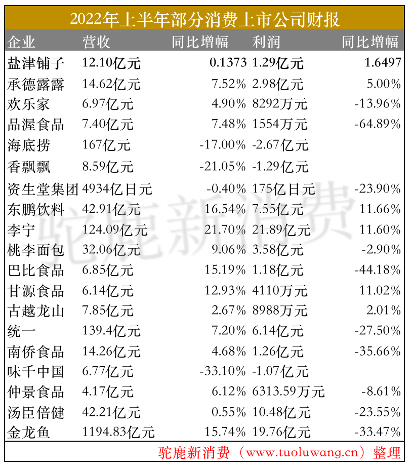 就拿2022年上半年來說,目前大多數(shù)消費(fèi)企業(yè)已經(jīng)基本上都發(fā)布了上半年財(cái)報,消費(fèi)行業(yè)目前到底什么情況,其實(shí)稍加整理,基本上就能夠一目了然。