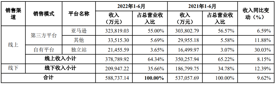 安克創(chuàng)新2022半年報(bào),按銷售渠道劃分的收入情況