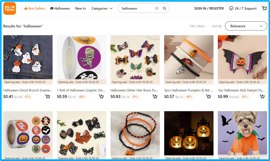 Temu上萬圣節(jié)相關(guān)商品售價(jià)低于1美金