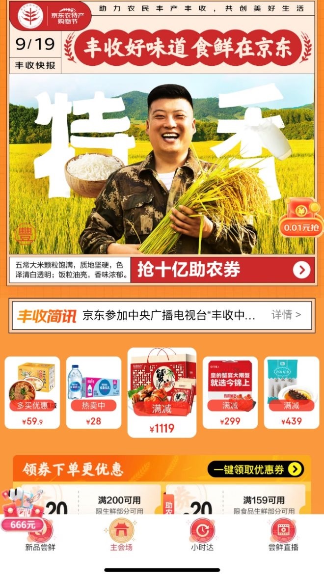 在京東APP搜索“大閘蟹”,首先映入眼簾的是京東農(nóng)特產(chǎn)購(gòu)物節(jié),從9月7日至25日,京東將向消費(fèi)者發(fā)放十億“助農(nóng)券”,助力農(nóng)特產(chǎn)品銷(xiāo)售。搶了助農(nóng)券再買(mǎi)大閘蟹,還會(huì)發(fā)現(xiàn)今年大閘蟹的到貨時(shí)間比往年快了很多,有的地區(qū)甚至可以實(shí)現(xiàn)“小時(shí)達(dá)”。