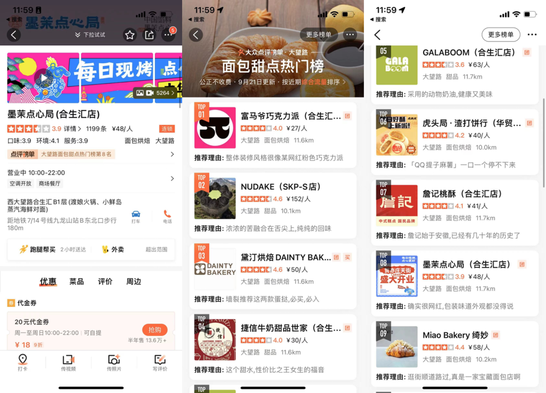 在大眾點評大望路商圈面包甜品熱門榜上,墨茉點心局僅排名第8,排名和星級均不及同一時間崛起的虎頭局·渣打餅行和詹記桃酥。