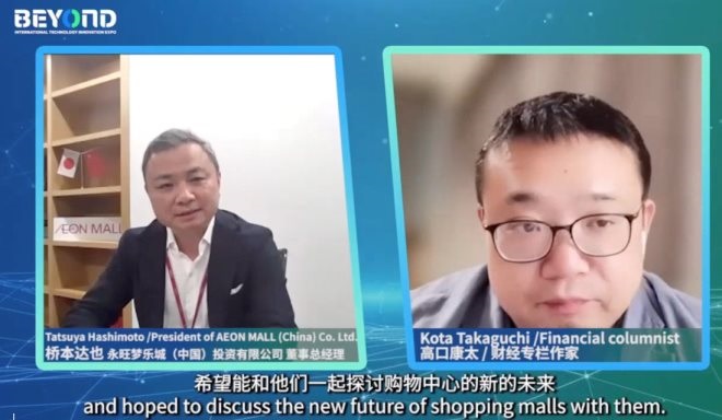 永旺夢樂城(中國)投資有限公司董事總經(jīng)理橋本達也先生21日在出席第二屆BEYOND國際科技創(chuàng)新博覽會時,也針對此項目與日本財經(jīng)專欄作家進行了深度對話,就“購物中心商業(yè)模型的創(chuàng)新和中日創(chuàng)新合作的未來”發(fā)表了自己獨到的見解。