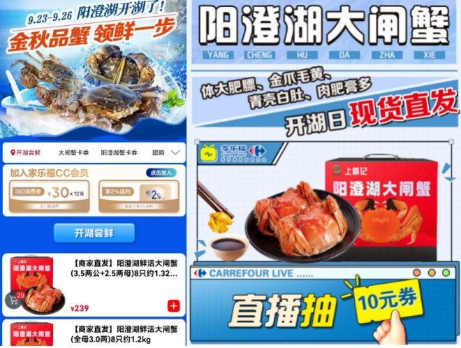 陽澄湖大閘蟹開湖 家樂福蟹卡線上線下均可購買