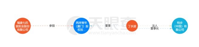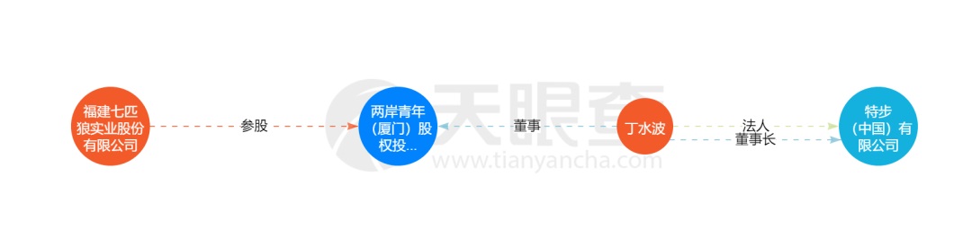 時代周報記者查詢天眼查數(shù)據(jù)獲悉,成立于2015年的兩岸青年(廈門)股權投資基金管理有限公司,董事行列中就有福建七匹狼實業(yè)股份有限公司與晉江萬灃投資有限公司(實控人為特步集團副總裁丁明忠)。此外,七匹狼控股集團和特步中國也共同參股晉江市商會投資開發(fā)有限公司。