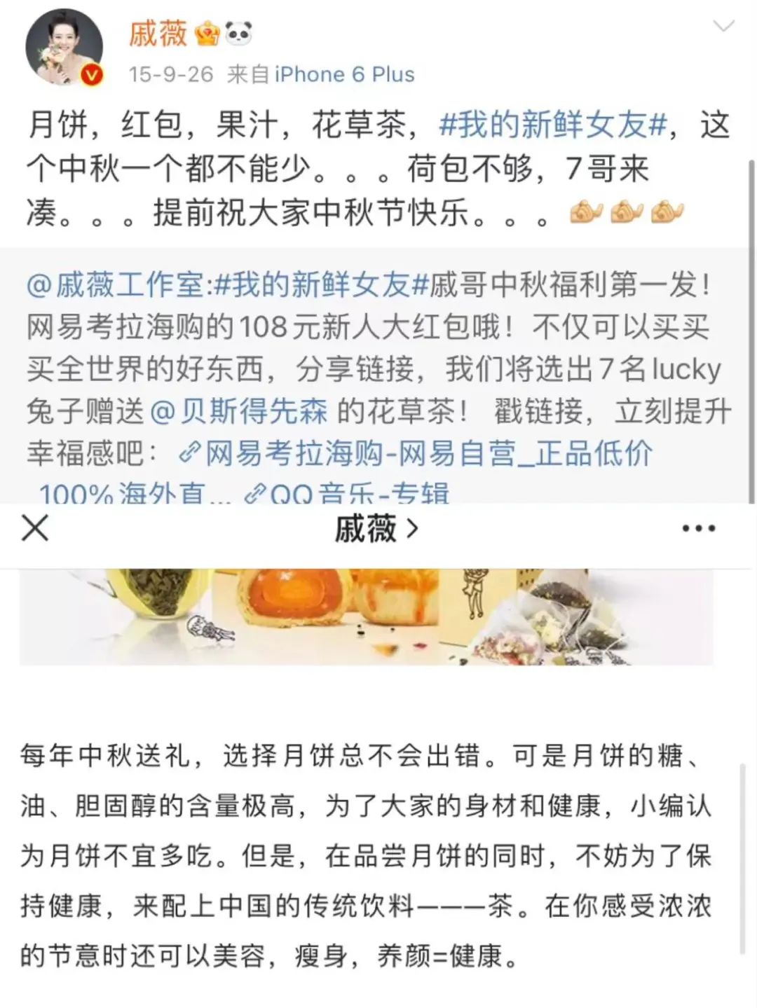 不久前帶貨翻車的戚薇,也曾在2015年推銷過自己的茶葉。戚薇聯(lián)合自己代言的品牌Freshmix,推出了“戚薇茶包”花草茶,在當(dāng)時(shí),這款花草茶還打著追求“白瘦美”的旗號(hào),推出了八個(gè)款式。
