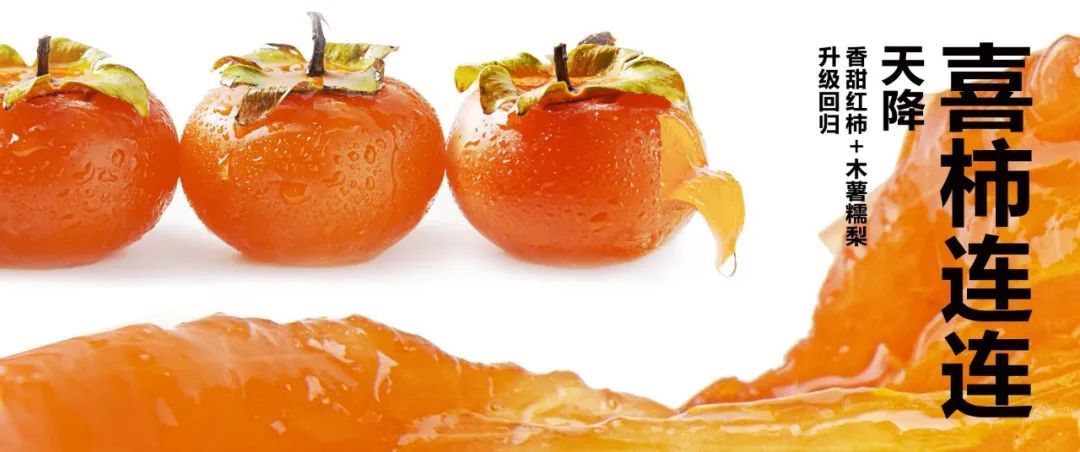 雅克雅思去年11月上了一款“柿子版的楊枝甘露” 甘露柿 ,還有兩款“可溫”柿子飲品: 心想柿橙 和 萬(wàn)柿如意 。