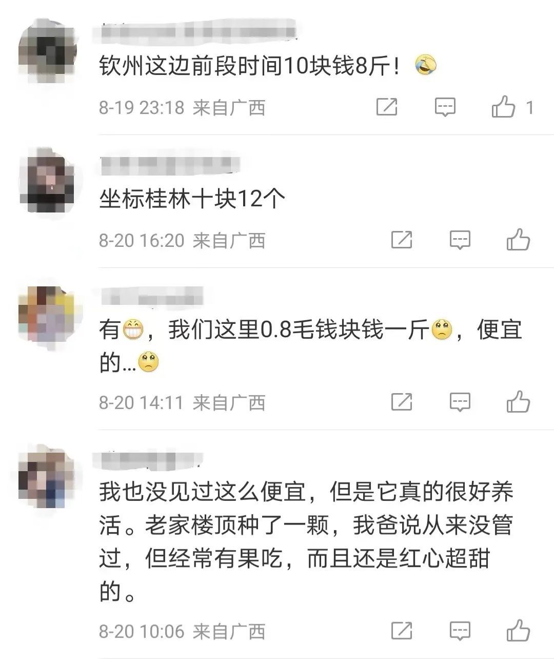 △ 網(wǎng)友分享廣西火龍果的價格圖源:社交媒體截圖