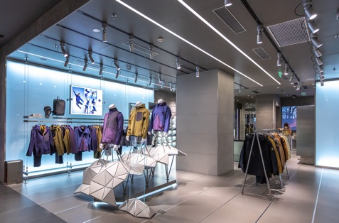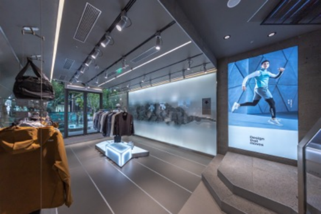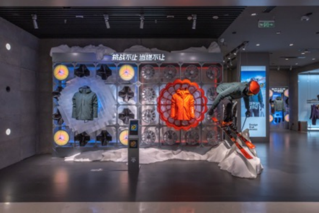 一層主入口處的全新打造的科技雪山裝置櫥窗,以雪山和雪道斜坡為靈感,講述著一切始于滑雪的故事,冰雪運動是迪桑特的初心,更是一直驅(qū)使品牌不斷前進的動力。