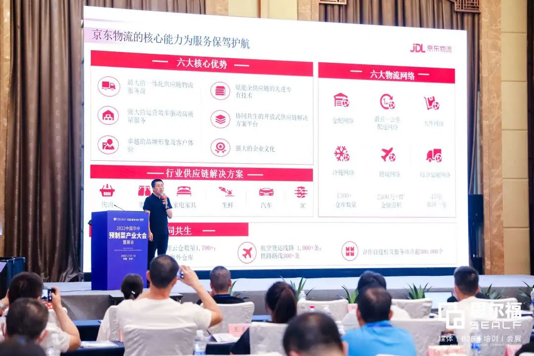 在大會(huì)暨展會(huì)論壇上,京東物流公共業(yè)務(wù)部總經(jīng)理傘明開(kāi)展了“中央廚房預(yù)制菜京東物流探索與實(shí)踐”的主題演講。傘明強(qiáng)調(diào):從政府對(duì)預(yù)制菜的重視角度來(lái)說(shuō),預(yù)制菜賽道未來(lái)是非?善诘摹>〇|物流針對(duì)預(yù)制菜市場(chǎng)將聚焦服務(wù)兩類對(duì)象:一類是中央廚房(ToB),提供一體化供應(yīng)鏈服務(wù);另一類是預(yù)制菜(ToC),全渠道多溫層履約服務(wù)。