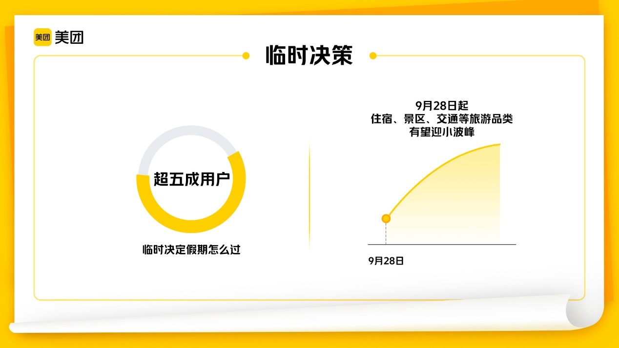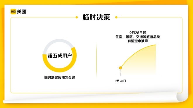 美團發(fā)起的用戶國慶出游調(diào)研顯示,超過五成用戶會選擇在出游前3天內(nèi)甚至當天臨時制訂計劃。