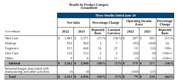 據(jù)2022財年第四季度財報顯示,香水業(yè)務凈銷售額為5.21億美元,同比增長16%,與其他業(yè)務板塊相比增長極為亮眼,主要營收來源的護膚板塊銷售額為18.83億美元,同比下降21%。