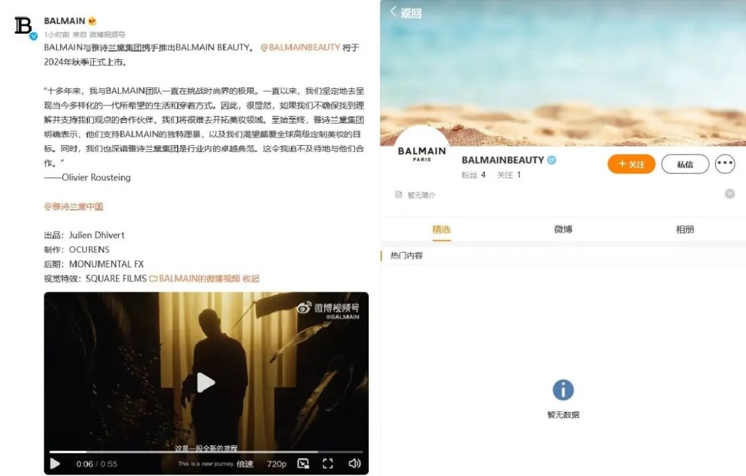 目前,Balmain Beauty已在Instagram、微博等平臺開設社交賬號,為品牌預熱。