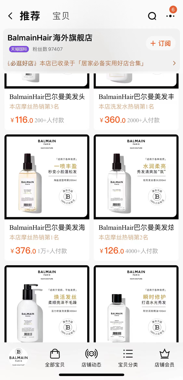相比之下,旗下護發(fā)品牌Balmain Hair在天貓平臺銷量不俗,官方海外旗艦店粉絲近10萬人,一款126元至376元不等的定型噴霧銷售量已破萬,多款護發(fā)類產(chǎn)品銷量破千。