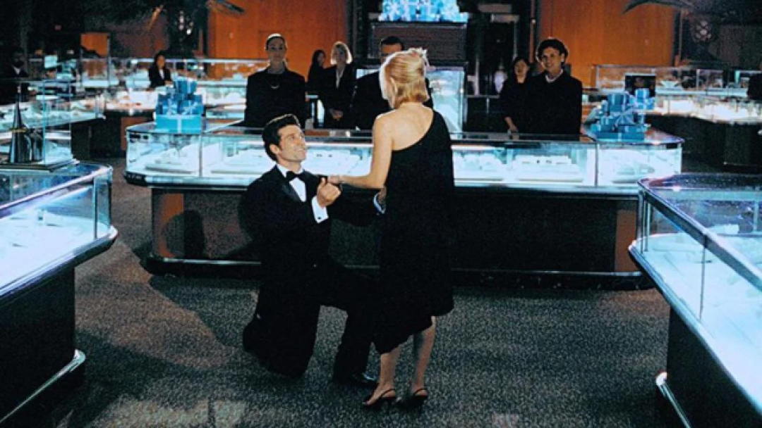結(jié)婚必須買鉆戒這件事,是整個(gè)產(chǎn)業(yè)鏈長期市場教育的結(jié)果。上游有戴比爾斯的“鉆石恒久遠(yuǎn),一顆永流傳”,下游的蒂芙尼在電影里瘋狂植入,《情歸阿拉巴馬》中,帥氣多金的市長公子包場蒂芙尼銷售大廳,向女主角求婚:pick one。