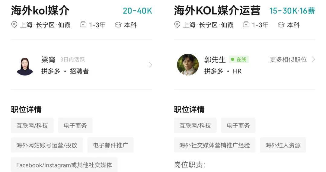 跨境電商經(jīng)過了幾年的推廣紅利期,現(xiàn)在平臺(tái)與網(wǎng)紅的推廣費(fèi)用都在升高,剛剛成立的Temu還需要大范圍的推廣宣傳,招聘平臺(tái)顯示,Temu還在招聘海外KOL媒介運(yùn)營(yíng),需要擁有海外投放宣發(fā)經(jīng)驗(yàn)的員工。