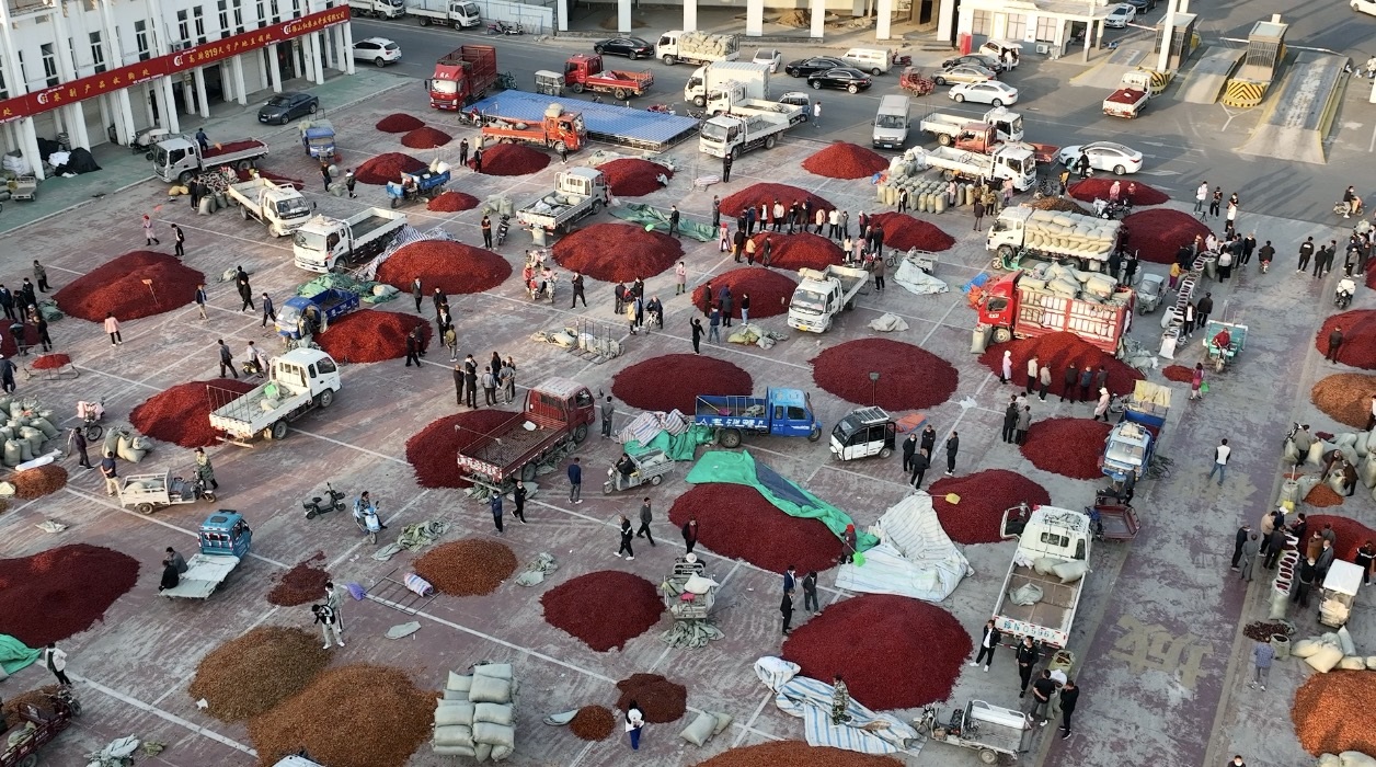 金秋時(shí)節(jié),在豫東平原鄉(xiāng)鎮(zhèn)的田間,一望無際的辣椒正在茁壯成長(zhǎng)。河南柘城,近年也正因辣椒產(chǎn)業(yè)而“紅”遍海內(nèi)外:這里的辣椒種植面積常年穩(wěn)定在40萬畝以上,目前已吸引近20萬人聚集在產(chǎn)業(yè)鏈上,每年有超過70萬噸辣椒從柘城辣椒大市場(chǎng)銷往全國各地和全球20多個(gè)國家和地區(qū),年交易額超過100億元。