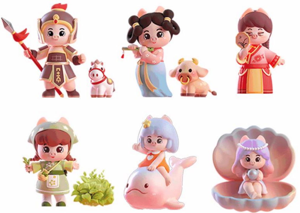 據(jù)悉,豬小百盲盒形象在百大集團(tuán)63周年慶上首發(fā)推出“科里科氣”小百和小美,表達(dá)與科教之城共美好的生活理念。此次舉國(guó)歡慶之日,徽風(fēng)徐來系列盲盒推出了具有地域代表性符號(hào)的六款豬小百造型。
