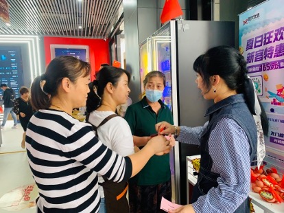 為了共慶十一國慶節(jié),山海共富農(nóng)優(yōu)產(chǎn)品展銷窗口國慶活動從29日起持續(xù)到10月3日,推出一系列優(yōu)惠措施。到場的消費者均能在大廳入口處的特賣超市獲得兩次免費抽獎機會,抽到獎券后可以到相應(yīng)的縣域館領(lǐng)取特色禮物。同時,全場只要消費滿198元就能獲得砸金蛋機會一次,有機會獲得電視機大獎。在特賣超市,凡是進店的消費者入群就能免費領(lǐng)到五枚雞蛋。