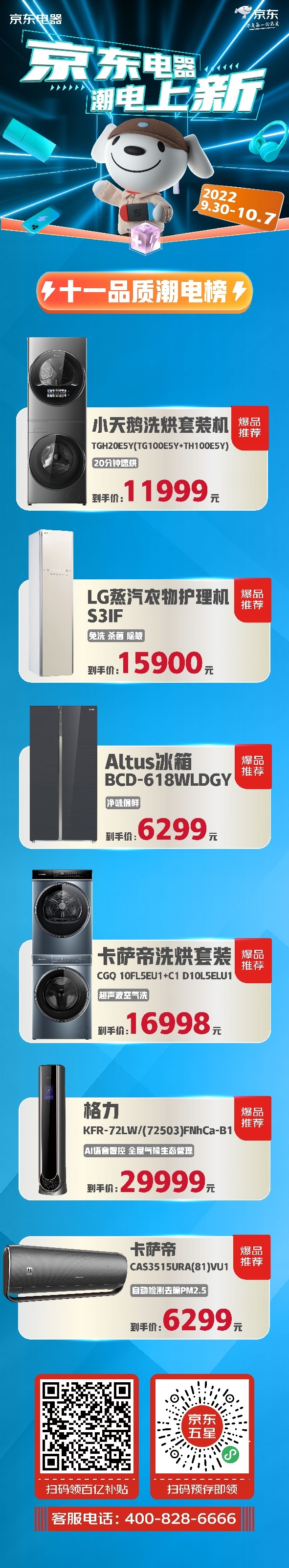為了滿足國慶激增的家電套餐需求,京東五星電器推出“品質(zhì)潮電榜”,為消費者篩選出多款熱銷的口碑單品,供大家直接“抄作業(yè)”。