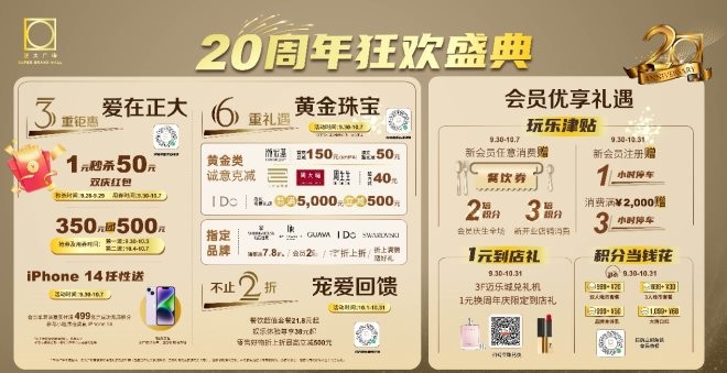 大額滿減秒殺、黃金克減感恩、大牌超值打折、會(huì)員連送豪禮,品牌潮趣聯(lián)動(dòng)、音樂IP快閃、童趣嗨玩指南、可愛動(dòng)漫打卡,足足八大核心看點(diǎn),掀翻全城熱浪!貫穿整個(gè)10月的生日月驚喜,誠(chéng)邀新老消費(fèi)者,共同探索“多功能生活場(chǎng)所”的匠心煥新之處。