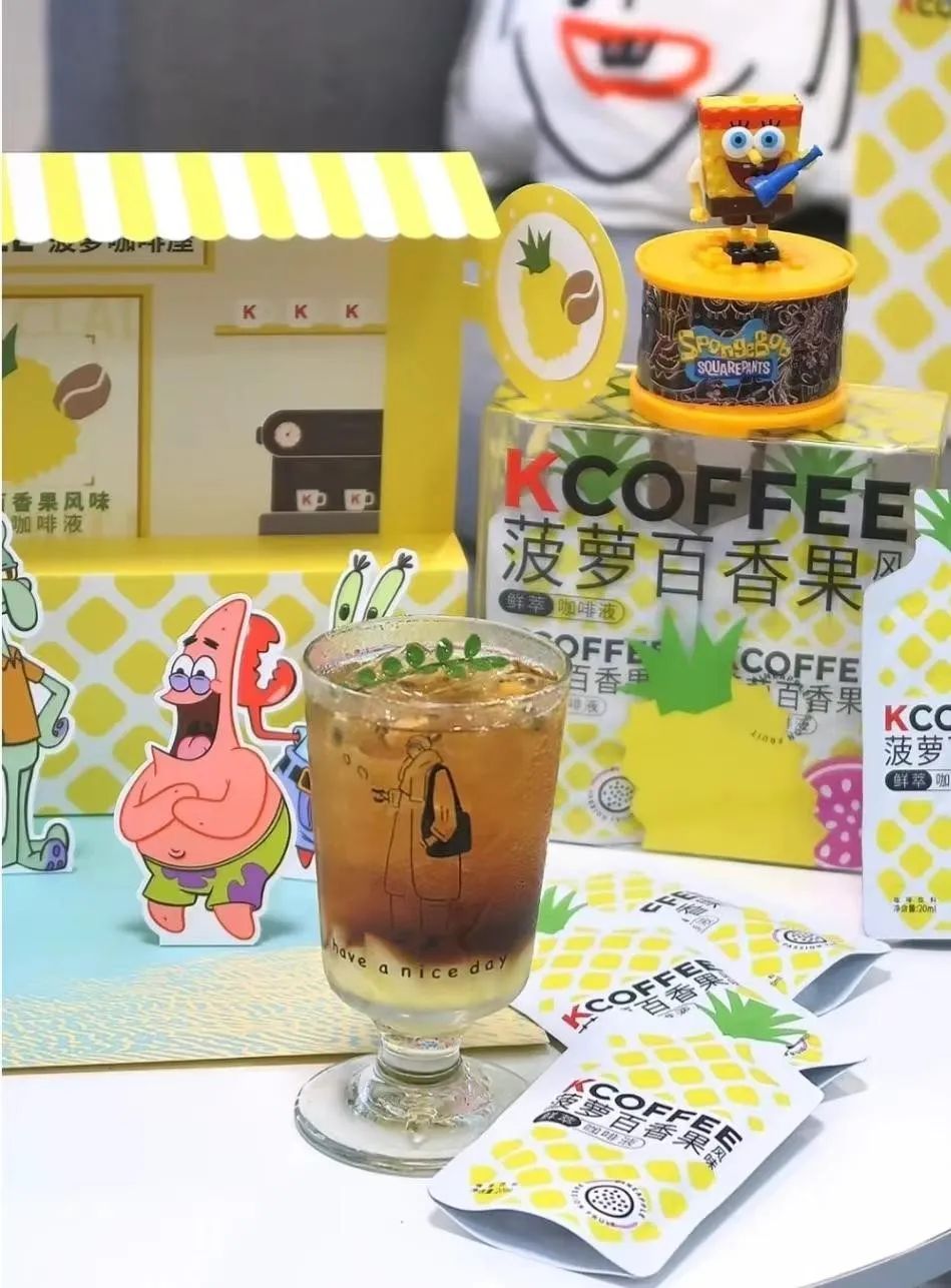 K咖啡萌萌燕麥拿鐵以及與海綿寶寶聯(lián)名的菠蘿冷萃咖啡,更是在小紅書上掀起“二創(chuàng)”潮流。