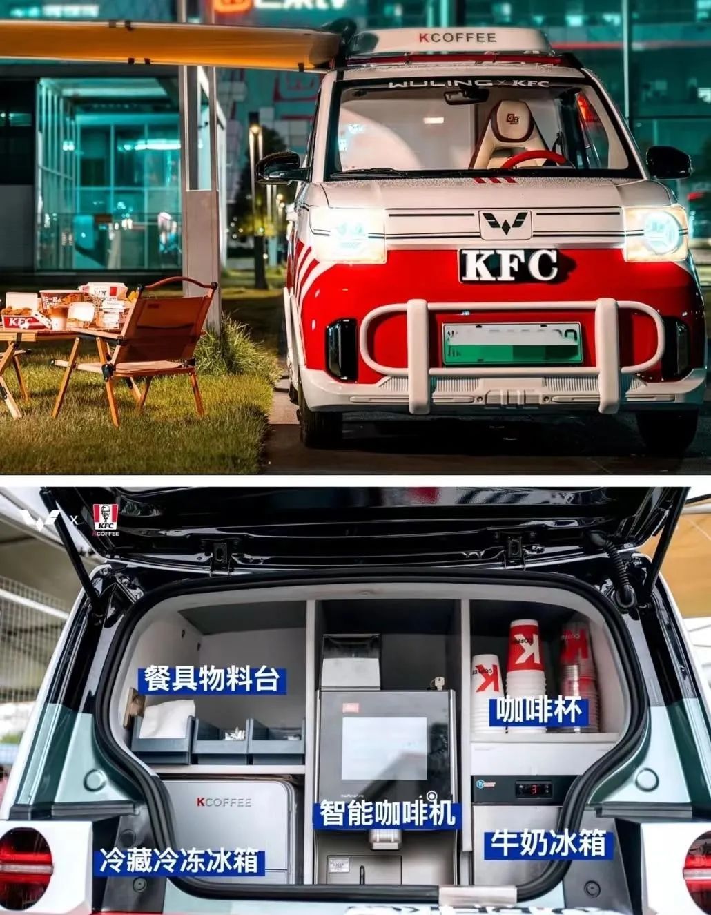 此前,其也曾多次解鎖過咖啡館的不同表現(xiàn)形式,比如肯德基現(xiàn)磨咖啡館、KCOFFEE與五菱宏光mini合作的移動咖啡館等等。