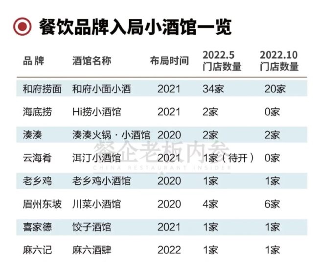海底撈開在北京的2家Hi撈小酒館都已經(jīng)關閉,和府的小面小酒五個月的時間關閉了14家,云海肴的洱汀小酒館還沒有開起來就遇到重創(chuàng),門店又做回了云南菜,湊湊、老鄉(xiāng)雞、喜家德也都沒有繼續(xù)擴店……