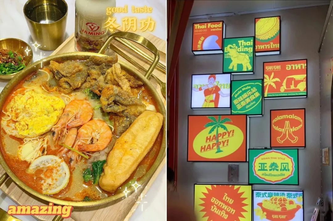 從產(chǎn)品來(lái)看,主打泰式風(fēng)味的麻辣燙,原本的骨湯、番茄湯變成了泰式冬陰功湯與咖喱湯;