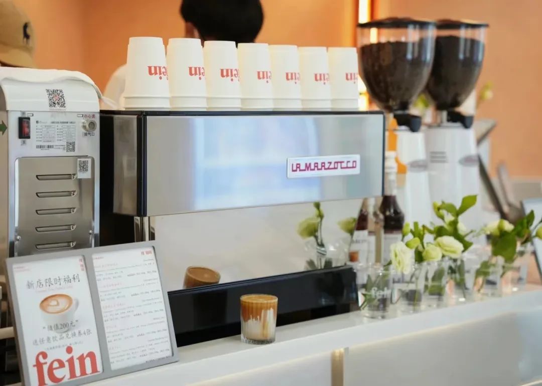 緋咖啡的整體復購率在40%以上,在緋咖啡店內,可以看到辣媽的咖啡機和意大利的磨豆機。據了解,緋咖啡的設備成本在30萬左右。