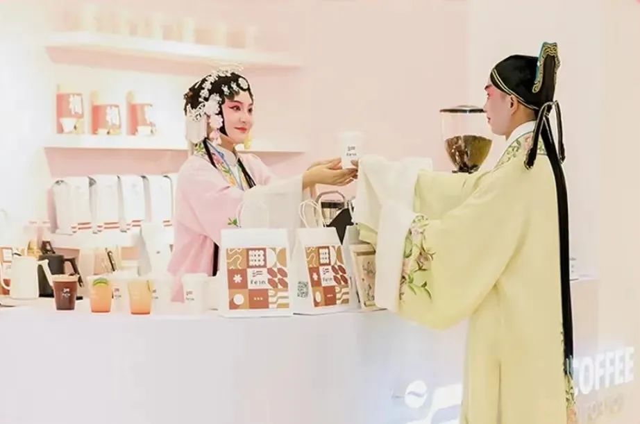 在和中國昆曲博物館聯(lián)名的過程中,緋咖啡設置了體驗區(qū),推出西廂記、牡丹亭、琵琶記等多款昆曲風味咖啡品,將傳統(tǒng)的昆曲IP融入咖啡。