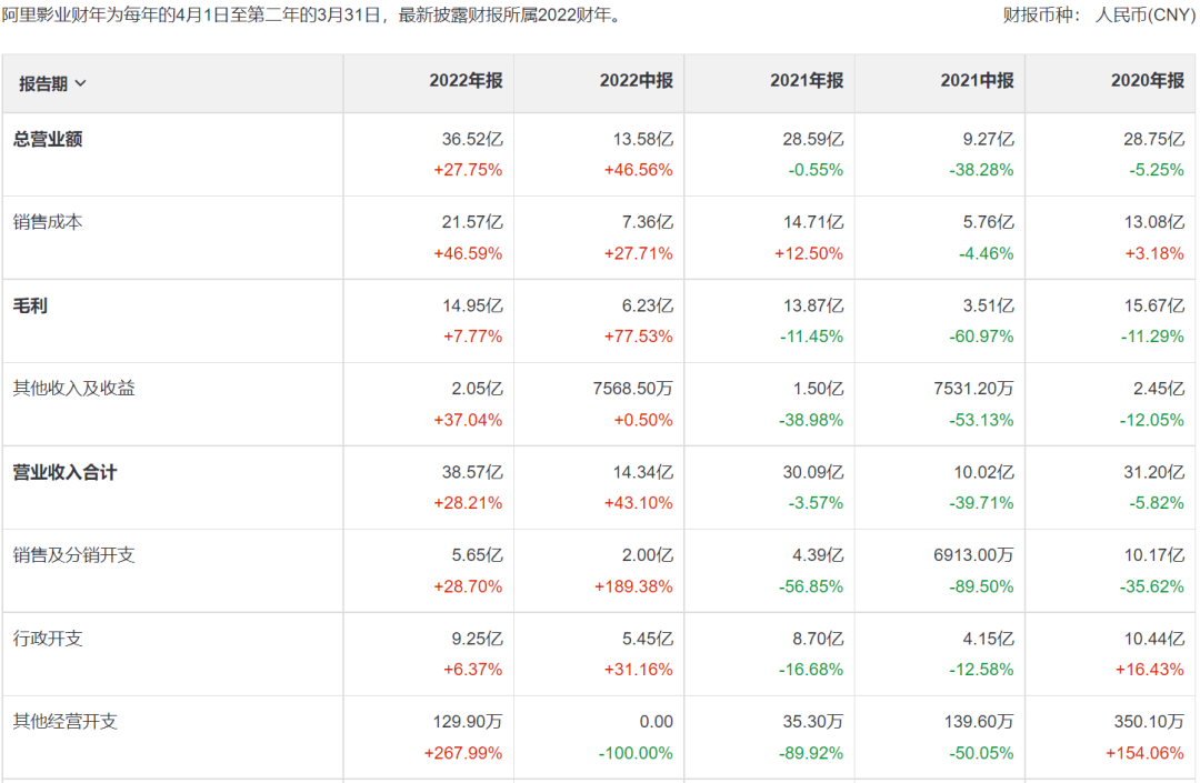 出品方之一的阿里影業(yè)在7月27日公布的2022年財報披露,公司2021年4月1日-2022年3月31日實現(xiàn)營業(yè)收入36.52億元,同比增長27.75%,歸屬母公司凈利潤1.70億元,同比扭虧為盈,去年同期虧損9631.10萬元,基本每股收益為0.0064元。