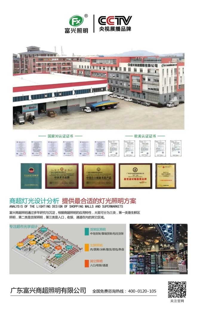 一方面,富興照明注重產(chǎn)品品質(zhì),其產(chǎn)品的耐用性極高,品質(zhì)保證可以質(zhì)保5年以上;另一方面,其注重產(chǎn)品效果,在為商超做燈光設(shè)計時,富興照明會根據(jù)超市不同區(qū)域、不同用途設(shè)置用燈量和調(diào)節(jié)亮度,主照明、輔照明和氛圍照明等方面做詳細(xì)的規(guī)劃、細(xì)分。