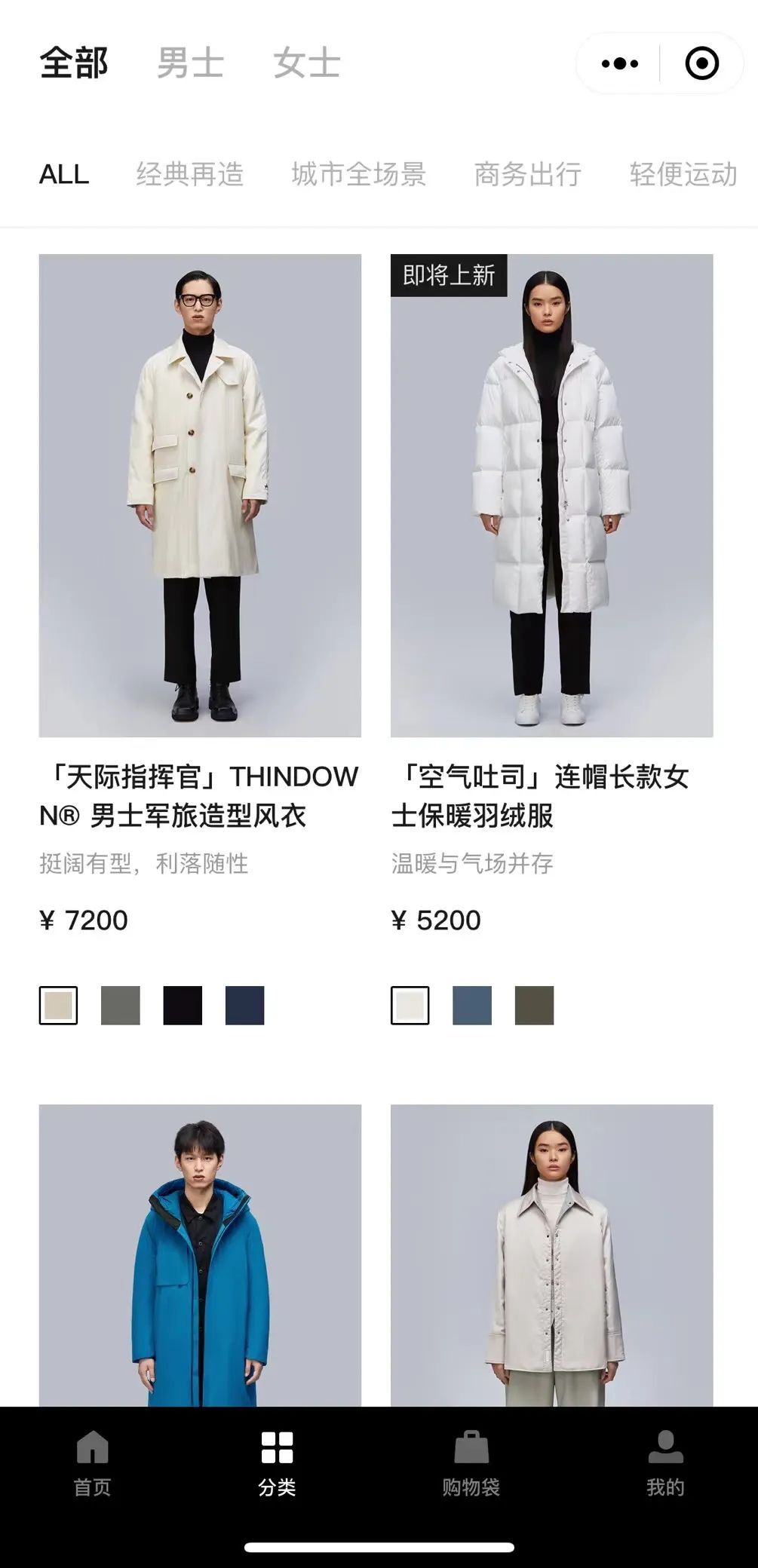 除了羽絨服品牌外,SKYPEOPLE小程序還顯示,羽絨漁夫帽、羽絨短款圍巾等其他單品即將上新。