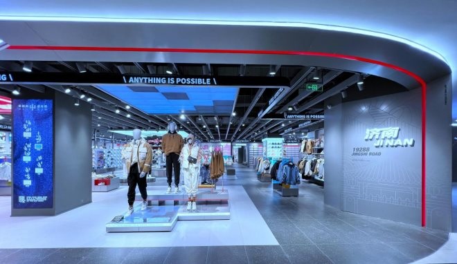 以李寧在重慶來(lái)福士店及濟(jì)南玉函銀座的門(mén)店為例,在“購(gòu)物體驗(yàn)、零售運(yùn)營(yíng)、運(yùn)動(dòng)文化傳達(dá)和運(yùn)動(dòng)專(zhuān)業(yè)性基礎(chǔ)上的時(shí)尚表達(dá)”四個(gè)方面進(jìn)一步的升級(jí),讓門(mén)店成為更專(zhuān)業(yè)、更具效率、更年輕化的李寧零售交互空間。