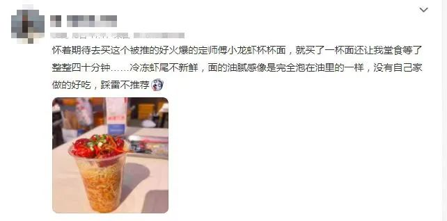 眾所周知,餐飲產(chǎn)品要形成復(fù)購最重要的因素就是口味、品質(zhì),如果有一次不好的消費體驗,消費者很可能就不會再有后續(xù)的復(fù)購。長此以往,小龍蝦杯面的熱度就是曇花一現(xiàn)。