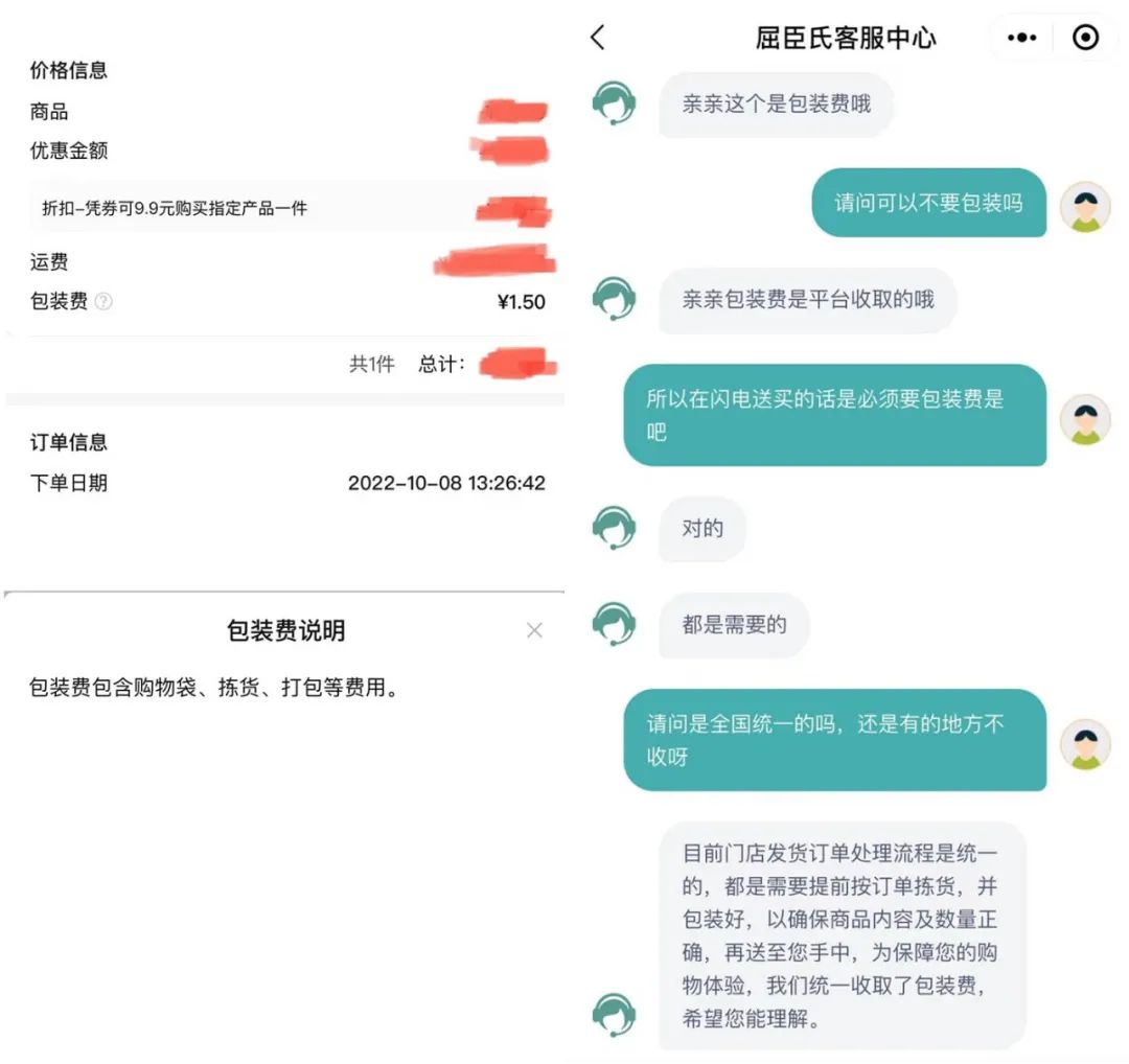近日,武漢屈臣氏個(gè)人用品商店有限公司荊門分公司因“閃電送”業(yè)務(wù)強(qiáng)制收取消費(fèi)者1.5元包裝服務(wù)費(fèi),被監(jiān)管部門沒收違法所得6772.50元,并處以違法所得一倍的罰款。事實(shí)上,服務(wù)費(fèi)在“美妝外賣”中十分普遍,這也再次提醒門店和品牌切勿因小失大。