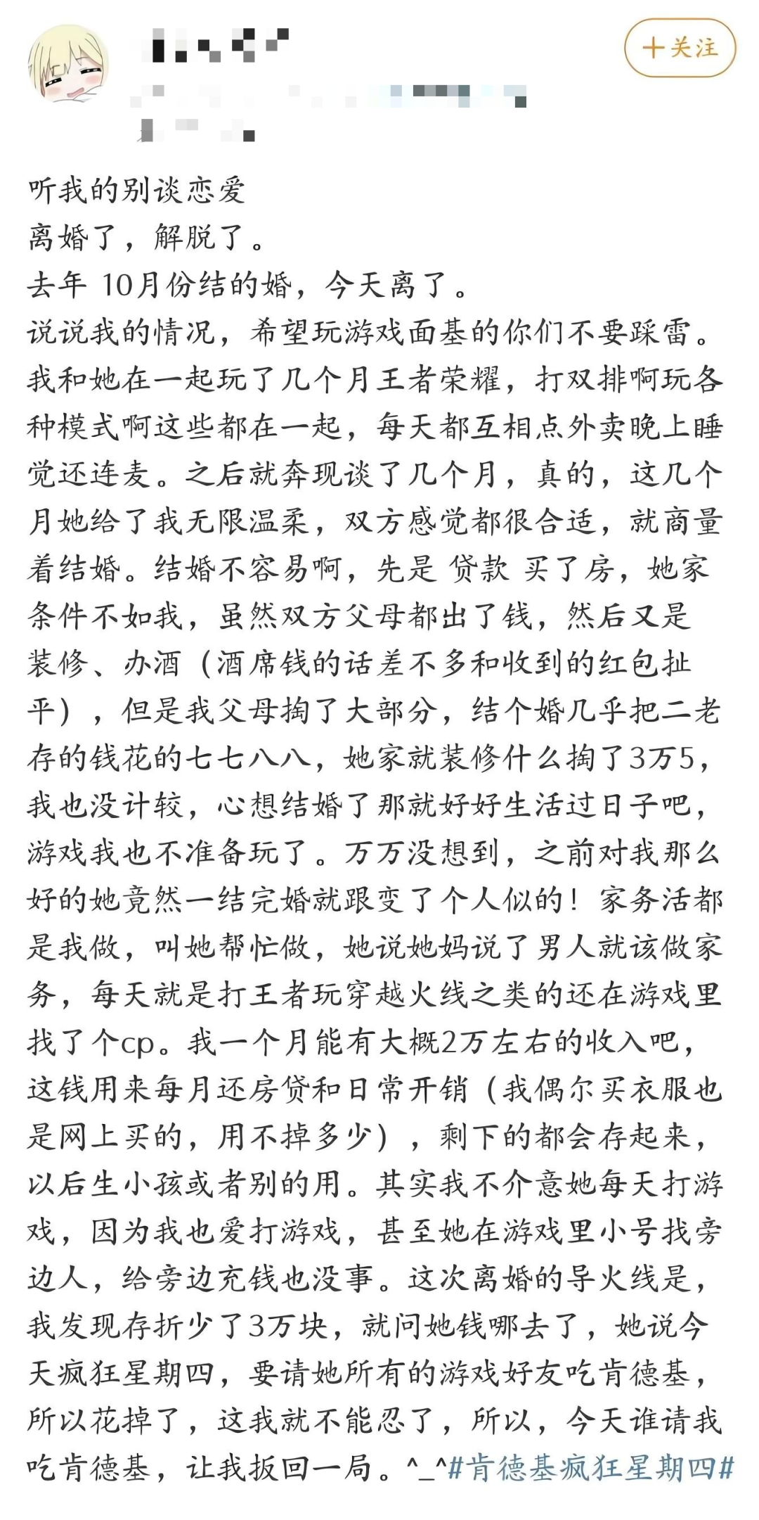 又如下面這個,洋洋灑灑這么長,大家看得真情實感,最后卻被#肯德基瘋狂星期四#的詞條給氣得啞口無言。
