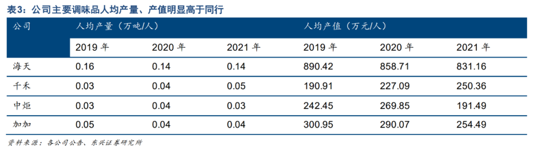 圖:調(diào)味品行業(yè)人均產(chǎn)量、產(chǎn)值對(duì)比 來(lái)源:東興證券研究所