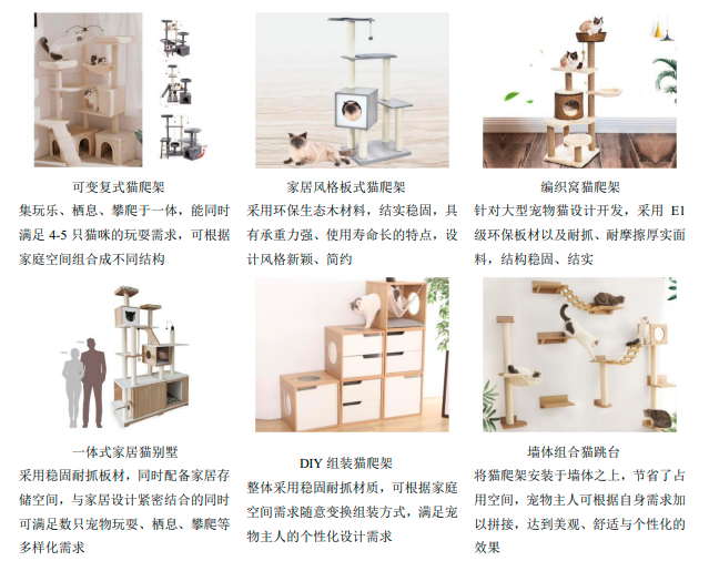 貓爬架和寵物玩具和是天元寵物的主要產(chǎn)品,收入加起來(lái)占到總營(yíng)收的近半壁江山。以2021年為例,其第一大品類貓爬架占主營(yíng)收入的22.01%,其次為寵物玩具占20.19%,寵物窩墊和寵物食品的占比分別在19.48%和18.17%。